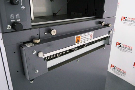 Duplo DC-616 Designed to eliminate white borders and prevent toner cracking on color documents, this all-in-one finisher can process up to 6 slits, 25 cuts and 20 creases in a single pass - bringing efficiency and automation to your post-press operations. Offering a fully automatic setup and quick changeovers, the DC-616 can finish a wide array of full-bleed digital applications including greeting cards, invitations, brochures, book covers, photos, and 24-up business cards without additional modules required. Pro Upgrade with Mounted PC The DC-616 Pro comes with several additional features, including a mounted PC loaded with Duplo's PC Controller Software, a CCD Scanner to read barcodes and registration marks, an Ultrasonic Double Feed Sensor, and an exterior Perforating Unit that can be easily attached to the exit of the machine.